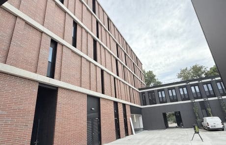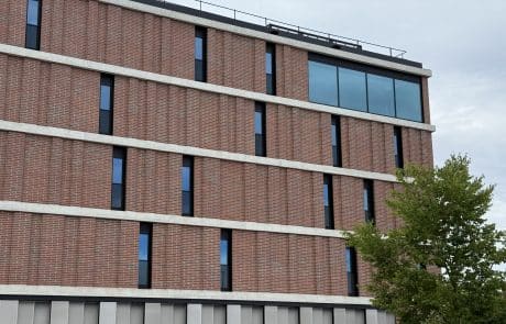 Anschlussfugen Metallfenster an Klinkerfassade und Türanlagen.